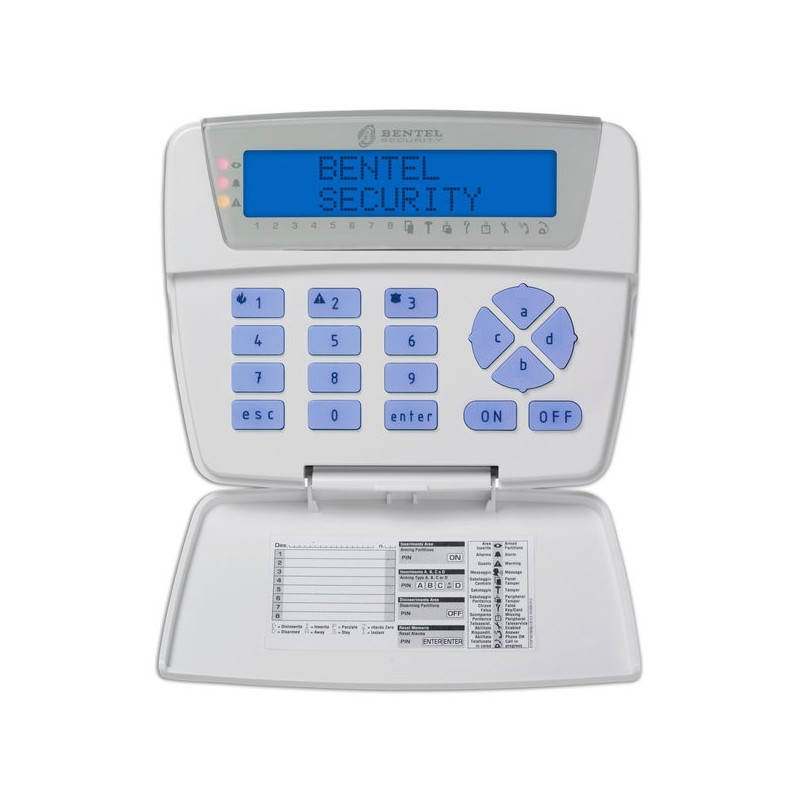 • Display a 2 linee da 16 caratteri di colore blu: il display mostra chiaramente le informazioni sul sistema e assiste l’installatore nella programmazione da tastiera
