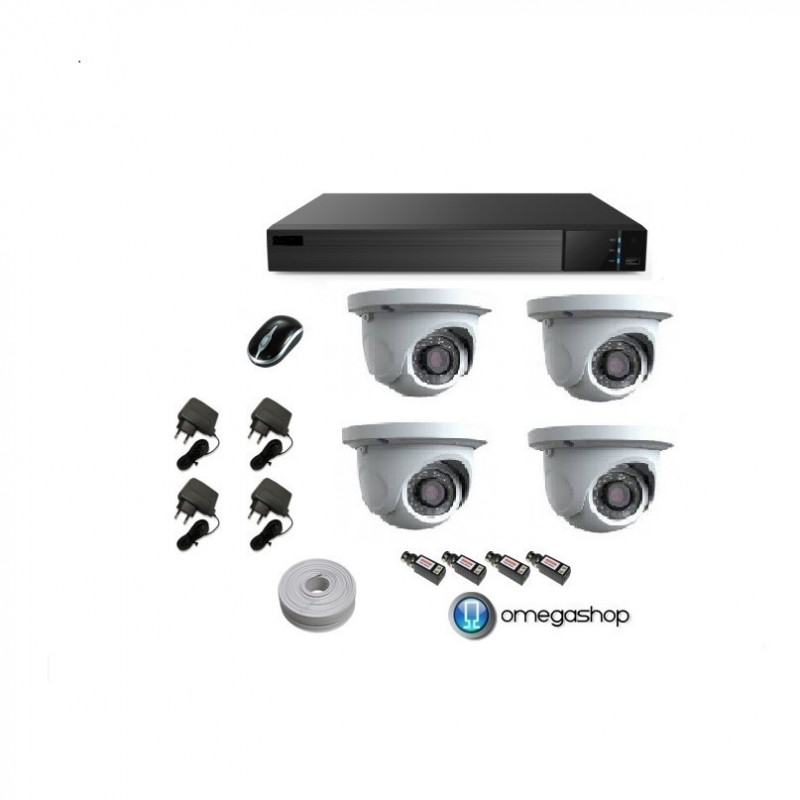 KIT VIDEOSORVEGLIANZA DVR/XVR IBRIDO 5 IN 1, 4 CANALI BNC H.264 FULL HD HDMI + 4 TELECAMERE FULL MINI DOME 4 IN 1 TVI/CVBS/CVI/AHD