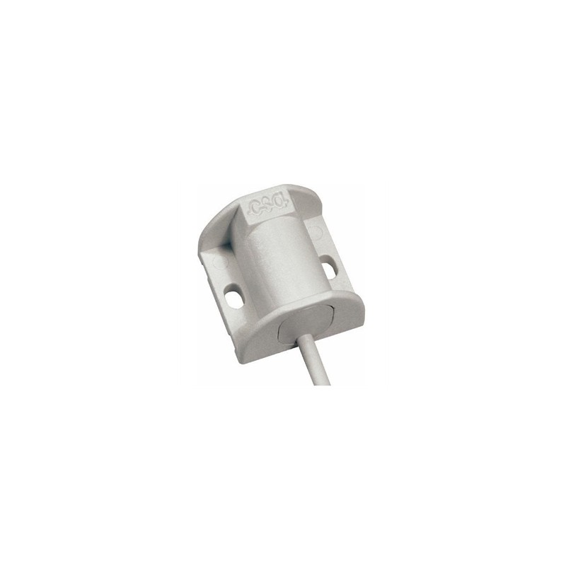 Sensore inerziale per la rilevazione di urti. All'interno sono contenuti dei contatti multipli dorati che, in seguito ad un urto sulla superficie di fissaggio, aprono il contatto ( NC in condizioni normali) per un tempo proporzionale all'intensita' dell'urto. Si utilizza in genere su porte, finestre e ovunque sia necessario rilevare un urto. Deve essere interfacciato, tramite cavo schermato, con una scheda di analisi come, ad esempio, la scheda 448 che presenta la regolazione della sensibilit e a cui si possono collegare piu' sensori in serie. Connessioni a 4 fili di cui 2 per il contatto e 2 per il loop antimanomissione (tamper) con cavo schermato. Viene fissato con viti o con biadesivo.