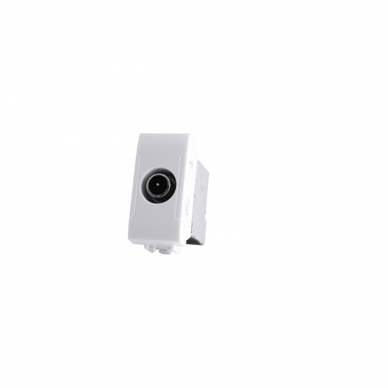 Presa coassiale diretta, derivata,  per impianti di antenna monoutenza anche telealimentati e centralizzati ed impianti via satellite monoutente e centralizzati con passaggio di corrente e di segnale per la selezione dei canali - morsetti di collegamento schermati con viti imperdibili ø 9,5 mm connettore maschio 1 modulo.