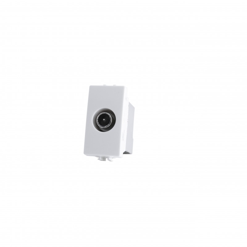 Presa coassiale diretta, derivata, per impianti di antenna monoutenza anche telealimentati e centralizzati ed impianti via satellite monoutente e centralizzati con passaggio di corrente e di segnale per la selezione dei canali - morsetti di collegamento schermati con viti imperdibili ø 9,5 mm connettore maschio 1 modulo.
