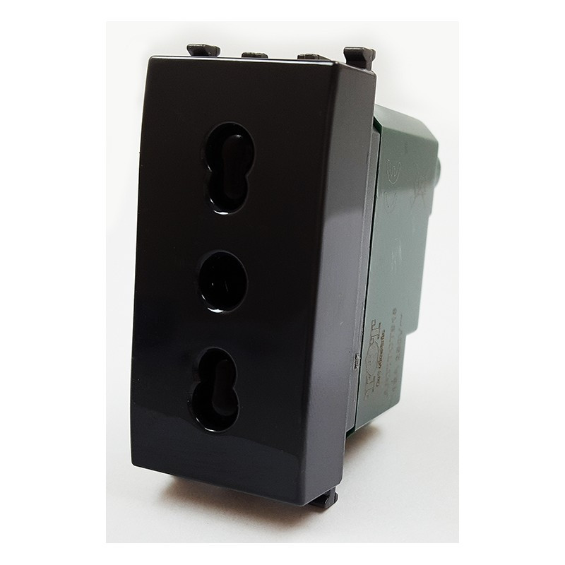 Presa 2 poli + terra 16 ampere 250 vac interasse 19mm e 26mm alveoli schermati per spine 2 poli e 2 poli + terra da 10 e da 16 ampere.