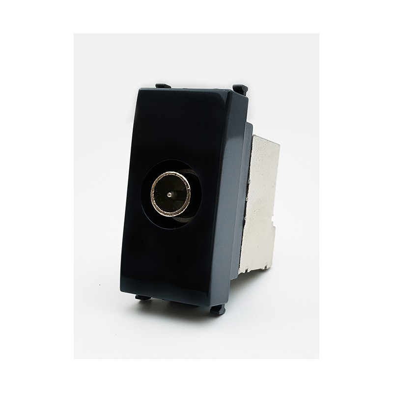 Presa coassiale diretta, derivata, per impianti di antenna monoutenza anche telealimentati e centralizzati ed impianti via satellite monoutente e centralizzati con passaggio di corrente e di segnale per la selezione dei canali - morsetti di collegamento schermati con viti imperdibili ø 9,5 mm connettore maschio 1 modulo.