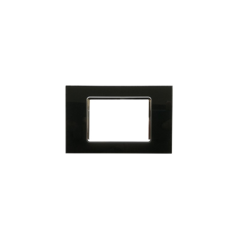PLACCA 8003BL-2 3 POSTI NERA COMPATIBILI BTICINO LIVING INT-LGT IN VETRO