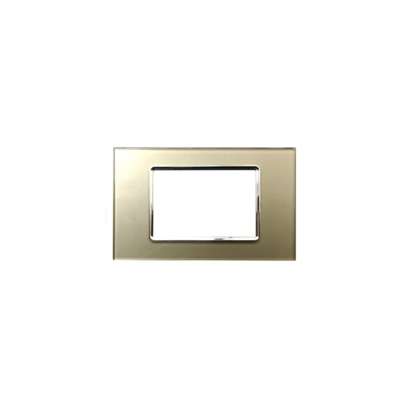 PLACCA 8003BL-4 3 POSTI CHAMPAGNE COMPATIBILE BTICINO LIVING INT-LGT VETRO