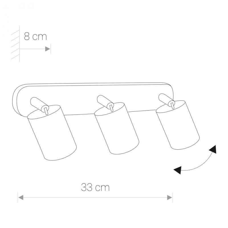 Item No.:6141Power:230Material:steel, chromeHeight:8 cmWidth:33 cmDistance from wall:14 cmBulb base:3 x GU10 max 10W, only LED