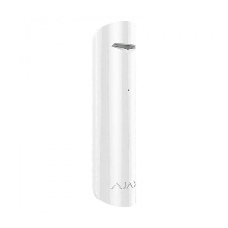 Piccolo rilevatore wireless che invia una notifica in caso di rottura di un vetro da parte di intrusi. Va installato a una distanza di 9 metri dalla finestra e filtra gli eventi che possono causare falsi allarmi di rottura.